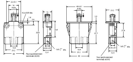 规格: 操作速度: 10mm-1m/sec 操作频率: 机械:120 ops/min,电气:30 ops/min 额定电流/电压: 16A 125/250VAC,4A 24VDC 3/4HP 125VAC 1-1/2HP 250VAC 寿命: 机械:1,000,000ops;电气1,000,000ops 环境温度e: -20~80℃不结冰 重量: 约 12-14g 保护等级n: IP40 |