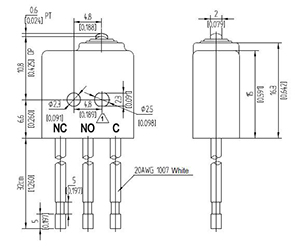 规格: 额定电压: 30VDC,125VAC,250VAC 额定电流: 1-7A 操作温度: 标准款:-54℃~+121℃(-65℃~+250℉) 高温款:-54℃~+204℃(-65℃~+400℉) 密封等级: IP67 (X3M) 机械寿命: 标准:10000000次,铰链设计/分叉金:1000000次 耐压值: 同级端子间 1,000VAC,50/60 Hz 1分钟 端子对地或对无载金属间2,500 VAC,50/60 Hz 1分钟 绝缘电阻: >100MΩ @ 500VDC 接点电阻: <25mΩ (初值) |