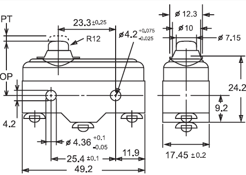 规格: 操作速度: 0.01mm-1m/sec 操作频率: 机械:240ops/min 电气: 20ops/min 绝缘电阻: >100MΩ @ 500V DC 接点电阻: <15mΩ 额定电流/电压: 15A,125/250/480VAC;3/4HP/125VAC 1.5HP/250VAC(UL:E321073) 耐压值: 同级端子间1000VAC 50/60Hz 1分钟 端子对地或对无载金属间2500VAC 50/60Hz 1分钟 寿命: 机械 10,000,000次, 电气500,000次 环境温度: -40 to +80°C (-40 to 176°F) 不结冰 湿度: <95%RH 防护等级: 一般型:IP00 防滴型(-55后缀):IP64 |