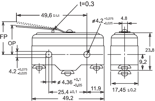 规格: 操作速度: 0.01mm-1m/sec 操作频率: 机械:240ops/min 电气: 20ops/min 绝缘电阻: >100MΩ @ 500V DC 接点电阻: <15mΩ 额定电流/电压: 15A,125/250/480VAC;3/4HP/125VAC 1.5HP/250VAC(UL:E321073) 耐压值: 同级端子间1000VAC 50/60Hz 1分钟 端子对地或对无载金属间2500VAC 50/60Hz 1分钟 寿命: 机械 10,000,000次, 电气500,000次 环境温度: -40 to +80°C (-40 to 176°F) 不结冰 湿度: <95%RH 防护等级: 一般型:IP00 防滴型(-55后缀):IP64 |