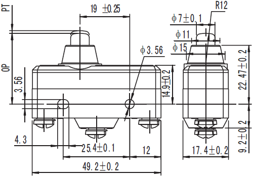 规格: 操作速度: 0.01mm-1m/sec 操作频率: 机械:240ops/min 电气: 20ops/min 绝缘电阻: >100MΩ @ 500V DC 接点电阻: <15mΩ 额定电流/电压: 20A,125/250/480VAC; 1.5HP/125VAC or 2HP/250VAC (UL:E321073) 耐压值: 同级端子间1000VAC 50/60Hz 1分钟 端子对地或对无载金属间2500VAC 50/60Hz 1分钟 寿命: 机械10,000,000次, 电气 500,000次 环境温度: -40 to +80°C (-40 to 176°F) 不结冰 湿度: <35~85%RH 防护等级: 一般型:IP00 防滴型(-55后缀):IP64 |