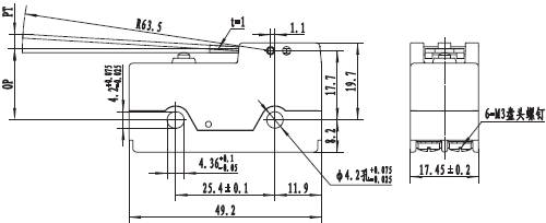规格: 操作速度: 0.1mm-1m/sec 操作频率: 机械:240ops/min 电气: 20ops/min 绝缘电阻: >100MΩ @ 500V DC 接点电阻: <15Mω(初值) 额定电流/电压: 10A,1/2HP 125/250; 2A 480VAC,0.5A 125VDC,02.5A 250VADC 耐压值: 同级端子间1000VAC 50/60Hz 1分钟 端子对地或对无载金属间1500VAC 50/60Hz 1分钟 寿命: 机械 1,000,000次, 电气500,000次 环境温度: -25 to +80°C (-13 to 176°F) 不结冰 湿度: 35%~85%RH 防护等级: IP00 |