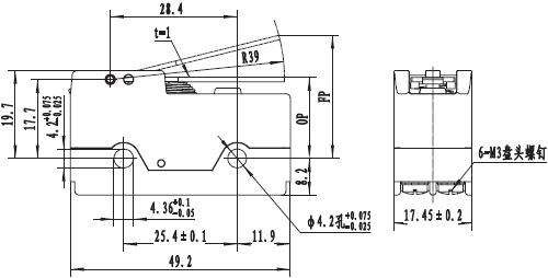 规格: 操作速度: 0.1mm-1m/sec 操作频率: 机械:240ops/min 电气: 20ops/min 绝缘电阻: >100MΩ @ 500V DC 接点电阻: <15Mω(初值) 额定电流/电压: 10A,1/2HP 125/250; 2A 480VAC,0.5A 125VDC,02.5A 250VADC 耐压值: 同级端子间1000VAC 50/60Hz 1分钟 端子对地或对无载金属间1500VAC 50/60Hz 1分钟 寿命: 机械 1,000,000次, 电气500,000次 环境温度: -25 to +80°C (-13 to 176°F) 不结冰 湿度: 35%~85%RH 防护等级: IP00 |