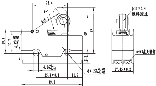 规格: 操作速度: 0.1mm-1m/sec 操作频率: 机械:240ops/min 电气: 20ops/min 绝缘电阻: >100MΩ @ 500V DC 接点电阻: <15Mω(初值) 额定电流/电压: 10A,1/2HP 125/250; 2A 480VAC,0.5A 125VDC,02.5A 250VADC 耐压值: 同级端子间1000VAC 50/60Hz 1分钟 端子对地或对无载金属间1500VAC 50/60Hz 1分钟 寿命: 机械 1,000,000次, 电气500,000次 环境温度: -25 to +80°C (-13 to 176°F) 不结冰 湿度: 35%~85%RH 防护等级: IP00 |