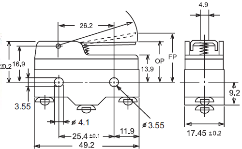 规格: 操作速度: 0.01mm-1m/sec 操作频率: 机械:240ops/min 电气: 20ops/min 绝缘电阻: >100MΩ @ 500V DC 接点电阻: <15mΩ(初值) 额定电流/电压: 10A ,1/2HP 125/250VAC,2A 480VAC; 0.5A 125VDC,0.25A 250VDC 耐压值: 同级端子间1000VAC 50/60Hz 1分钟 端子对地或对无载金属间1500VAC 50/60Hz 1分钟 寿命: 电气 1,000,000次, 机械 500,000次 环境温度: -25 to +105°C (-13 to 221°F) 不结冰 湿度: 35%~85%RH 防护等级: 一般型:IP00 防滴型(-55后缀):IP62 |