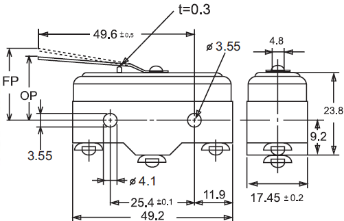 规格: 操作速度: 0.01mm-1m/sec 操作频率: 机械:240ops/min 电气: 20ops/min 绝缘电阻: >100MΩ @ 500V DC 接点电阻: <15mΩ(初值) 额定电流/电压: 10A ,1/2HP 125/250VAC,2A 480VAC; 0.5A 125VDC,0.25A 250VDC 耐压值: 同级端子间1000VAC 50/60Hz 1分钟 端子对地或对无载金属间1500VAC 50/60Hz 1分钟 寿命: 电气 1,000,000次, 机械 500,000次 环境温度: -25 to +105°C (-13 to 221°F) 不结冰 湿度: 35%~85%RH 防护等级: 一般型:IP00 防滴型(-55后缀):IP62 |