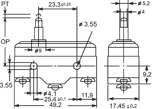 规格: 操作速度: 0.01mm-1m/sec 操作频率: 机械:240ops/min 电气: 20ops/min 绝缘电阻: >100MΩ @ 500V DC 接点电阻: <15mΩ(初值) 额定电流/电压: 10A ,1/2HP 125/250VAC,2A 480VAC; 0.5A 125VDC,0.25A 250VDC 耐压值: 同级端子间1000VAC 50/60Hz 1分钟 端子对地或对无载金属间1500VAC 50/60Hz 1分钟 寿命: 电气 1,000,000次, 机械 500,000次 环境温度: -25 to +105°C (-13 to 221°F) 不结冰 湿度: 35%~85%RH 防护等级: 一般型:IP00 防滴型(-55后缀):IP62 |