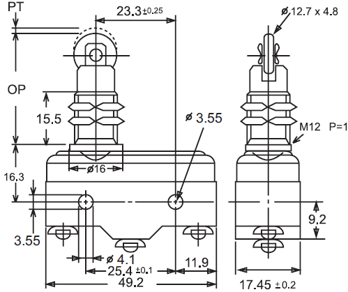 规格: 操作速度: 0.01mm-1m/sec 操作频率: 机械:240ops/min 电气: 20ops/min 绝缘电阻: >100MΩ @ 500V DC 接点电阻: <15mΩ(初值) 额定电流/电压: 10A ,1/2HP 125/250VAC,2A 480VAC; 0.5A 125VDC,0.25A 250VDC 耐压值: 同级端子间1000VAC 50/60Hz 1分钟 端子对地或对无载金属间1500VAC 50/60Hz 1分钟 寿命: 电气 1,000,000次, 机械 500,000次 环境温度: -25 to +105°C (-13 to 221°F) 不结冰 湿度: 35%~85%RH 防护等级: 一般型:IP00 防滴型(-55后缀):IP62 |