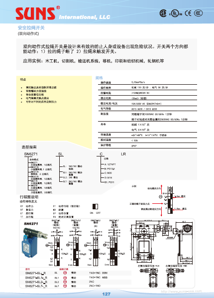 特点: 双向动作式拉绳开关是设计来有效的防止人身或设备出现危险状况。开关两个方向都能动作:1)拉的绳子断了 2)拉绳来触发开关