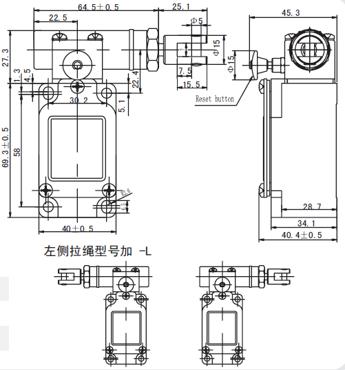 规格: 操作速度: 0.05mm-2m/sec 操作频率: 机械:120ops/min 电气: 30ops/min 绝缘电阻: >100MΩ @ 500V DC 接点电阻: <25mΩ 额定电流/电压: 10A/600V (EN60947-5-1) 电气等级: UL/cUL Listed(E216958) for AC15 A600/ DC13 Q300 耐压值: 同级端子间1000VAC 50/60Hz 1分钟 端子对地或对无载金属间2500VAC 50/60Hz 1分钟 寿命: 机械 10,000,000次, 电气 500,000次 环境温度: -25 to +80°C (-13 to 176oF) 湿度: <95%RH 防护等级: IP67 |