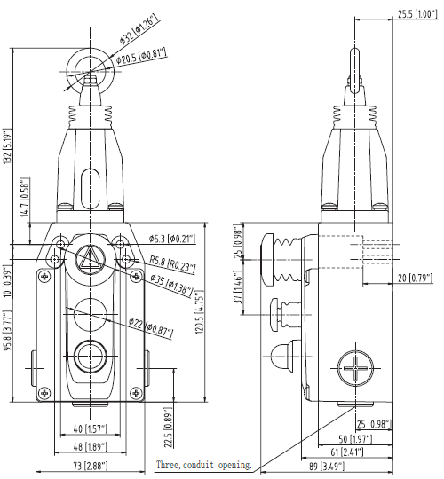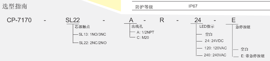 规格: 操作频率: 机械:120ops/min 电气: 30ops/min 绝缘电阻: >100MΩ @ 500V DC 接点电阻: <25mΩ 额定封闭发热电流: 10A/600VAC(EN60947-5-1) 电气等级: AC15 A600/ DC13 Q300 耐压值: 同级端子间1000VAC 50/60Hz 1分钟 端子对地或对无载金属间2500VAC 50/60Hz 1分钟 寿命: 机械 1,000,000次, 电气 500,000次 环境温度: -25 to +80°C (-3 to 176oF) 湿度: <95%RH 防护等级: IP67 |