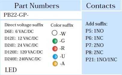PB(M)22N-GP-D6E 带灯按钮开关(平头)