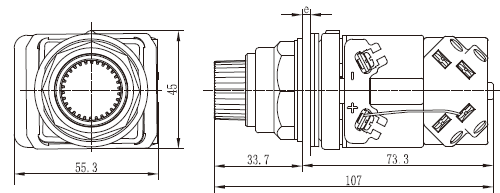规格: 额定电流 : 10 A 符合 IEC 60947-5-1, NF C 63-140, UL 508, CSA 22-2 No. 14, VDE 0660 part 2, NEMA / UL Type A600-Q600. 额定电压: 500 V 符合 NF C 20-040, VDE 0110, IEC 60158-1, 600 V conforming to UL 508 连接操作: 通过直接打开操作,缓慢接通NO或者缓慢切断NC(符合EN60947-5-1 第三部分). 连接电阻: <25mW (initial value) 操作力: 平头或凸头按钮-1NO连接芯部:10N,1NC连接芯部:8N 其他类型:1NO:14.5N,1NC:11.10N 短接保护: 10A 保险丝,Gl或N 符合IEC60269-1 和VDE0660-200.. 环境温度: 操作: -25°C to +70°C 储存: -40°C to +70°C 抗振动 : 60mm蘑菇头:8g,其他按钮:15g,小型摆杆控制按钮:5g(40-50Hz)符合IEC60068-2-6. 抗撞击 : 按钮:70g,蘑菇头按钮:15g,选择开关:200g.符合IEC60068-2-27. 电击防护 : 等级1,符合IEC60536和NFC 20-030. 保护等级符合IEC60529 : IP40 或 IP65 机械寿命 :按压按钮:3,000,000次 闭锁式蘑菇头按钮:300,000次 带灯选择按钮:100,000次 认证: UL/cUL(E216958):按压式和选择开关 NEMA / UL Type A600-Q600; 直接操作的带灯按钮:250V(最大值); 带电位器的带灯按钮:600V. 符合标准 : UL 508, IEC 60947-5-1, EN60947-5-1, IEC 60337-1, IEC 60337-2, VDE 0660 , CSA C 22-2 |
