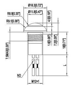 规格: 壳体材料: 热塑性尼龙材料/阳极氧化铝 按钮材料: 热塑性尼龙材料 接点电阻: <50mΩ (初值) 耐压值: 同级端子间 1000VAC 持续一分钟 端子对地或对无载金属间 2000VAC 持续一分钟 动作力: ~4 lbs(18N)或2.5 lbs (11N) 操作温度: -55 ~ +85°C (-67~185℉) 机械寿命: 一百万(次) 电气寿命: 电阻负载 5A 25,000(次) (@28VDC or 115VAC) 电感负载 3A 25,000(次) 防护等级: IP68 |