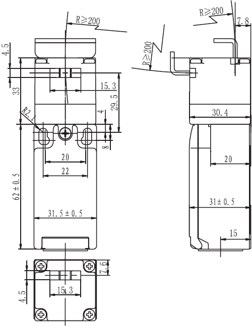 规格: 操作速度: 0.05mm-2m/sec 操作频率: 机械:120ops/min 电气: 30ops/min 绝缘电阻: >100MΩ @ 500V DC 接点电阻: <25mΩ 额定电流/电压: 10A/600V AC (EN60947-5-1) 电气等级: AC15 A600/ DC13 Q300 耐压值: 同级端子间1000VAC 50/60Hz 1分钟 端子对地或对无载金属间2500VAC 50/60Hz 1分钟 寿命: 机械 10,000,000次, 电气500,000次 环境温度: -25 to +80°C (-13 to 176oF) 湿度: <95%RH 防护等级: IP67/ IP66 钥匙安全门开关 |