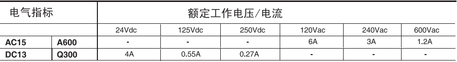 规格: 额定发热电流(Ith) 10 A 防护等级:IP67 NEMA Types 4X 额定冲击电压 (Uimp) :2500 V 污染等级: 3 额定绝缘电压 :(Ui) 600 V 使用温度范围: -25 °C to 50 °C [-13 °F to 122 °F] 储存温度范围: -40 °C to 85 °C [-40 °F to 185 °F] 短路保护 :Class J fuse (10A/600 Vac) 机械寿命 : 1,000,000 operations 短路电流 :1000 A 电磁铁工作电压和功率r : 24 Vac: +10 %, -15 %, 4 W 110 Vac: +10 %, -15 %, 8 W 230 Vac: +10 %, -15 %, 9 W 24 Vdc: +10 %, -20 %, 7 W 电磁锁定安全门开关 |